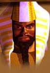 The Wizard lives in the Desert Realm. His weapon is a Staff. He is